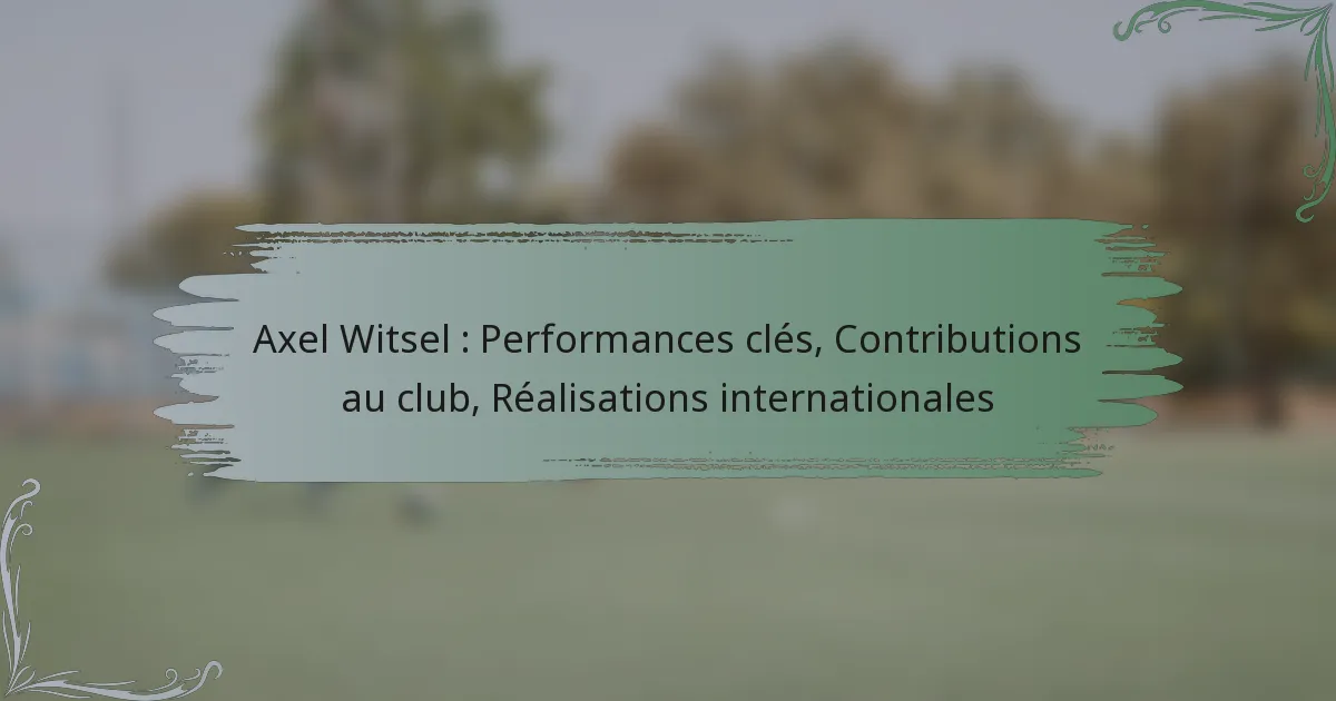 Quelles sont les performances clés d’Axel Witsel dans sa carrière ?