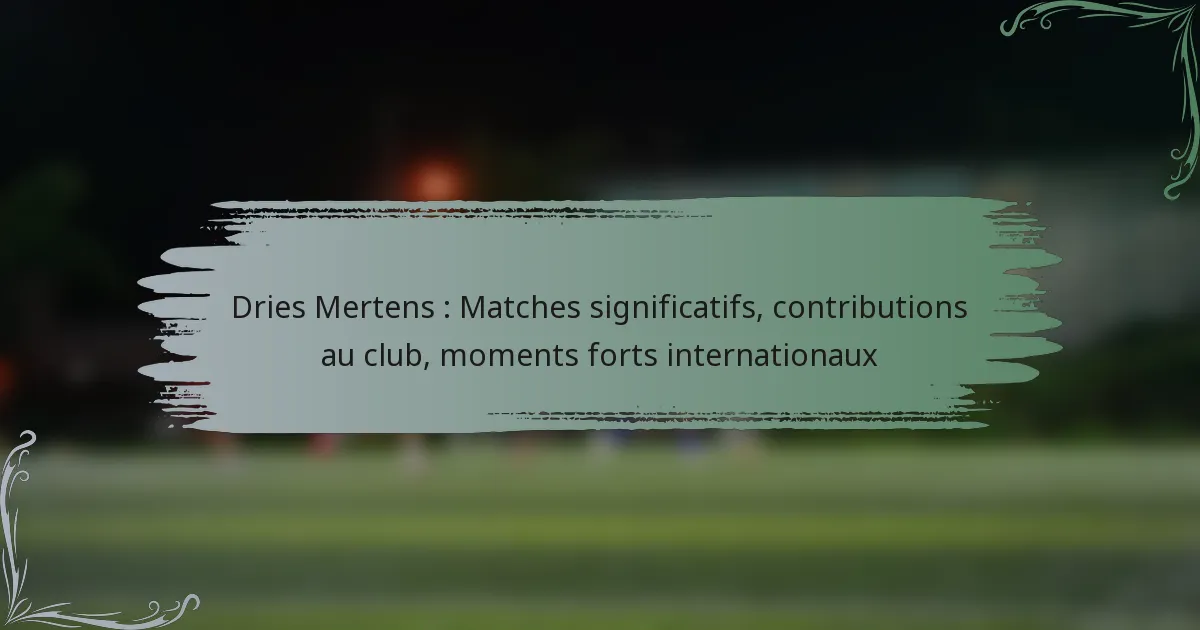 Dries Mertens a eu de nombreux matchs significatifs tout au long de sa carrière, mettant en valeur son talent tant en club qu’en international. Ses performances mémorables ont fait de lui un favori des fans et un joueur clé pour ses équipes.