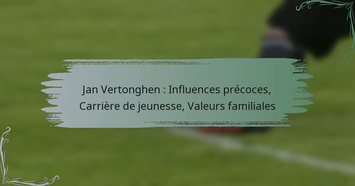 Les influences précoces de Jan Vertonghen se caractérisent par un fort soutien familial, un mentorat clé et un engagement envers les valeurs communautaires. Ces éléments ont façonné sa résilience, son travail d’équipe et ses aspirations éducatives, qui ont tous joué un rôle crucial dans sa carrière footballistique.